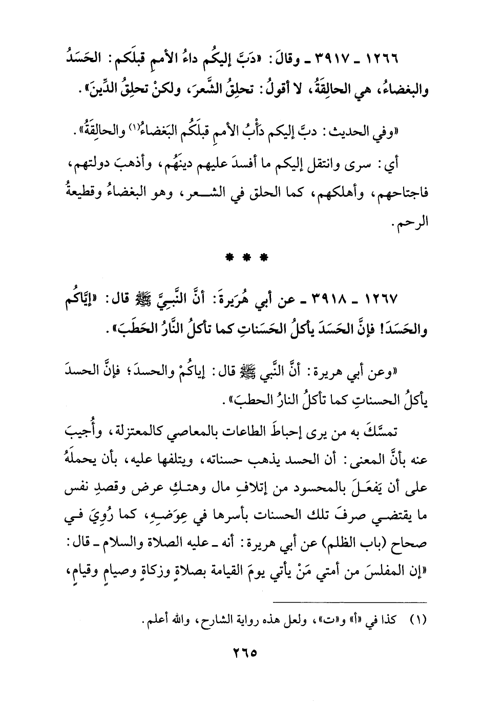 1266 - 3917 - وقال: "دب إليكم داء الأمم قبلكم: الحسد والبغضاء, هي الحالقة, لا أقول: تحلق الشعر, ولكن تحلق الدين"