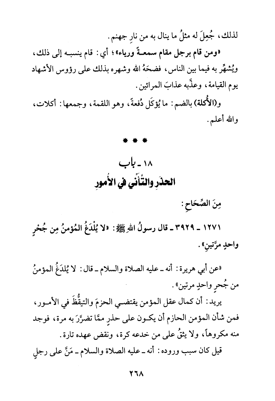 يريدك أن كمال عقل المؤمن يقتضي الحزم والتيقظ في الأمور, فمن شأن المؤمن الحازم أن يكون على حذر مما تضرر به مرة, فوجد منه مكروها, ولا يثق على من خدعه كرة, ونقض عهده تارة.
