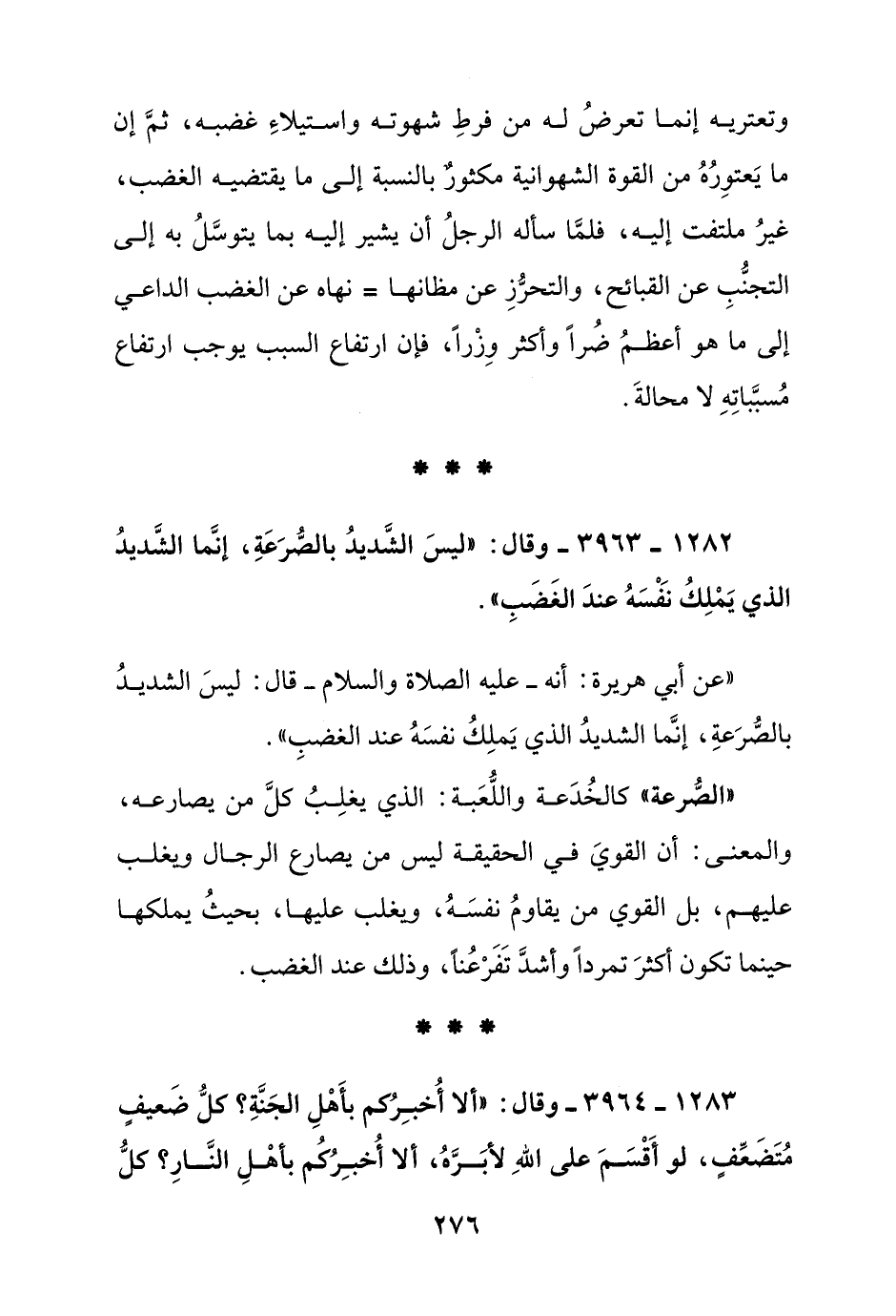 1282 - 3963 - وقال: "ليس الشديد بالصرعة, إنما الشديد الذي يملك نفسه عند الغضب"