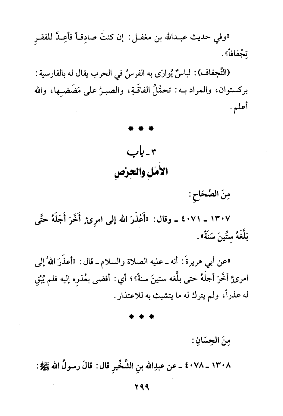 1307 - 4071 - وقال: "أعذر الله إلى امرئ أخر أجله حتى بلغه ستين سنة"