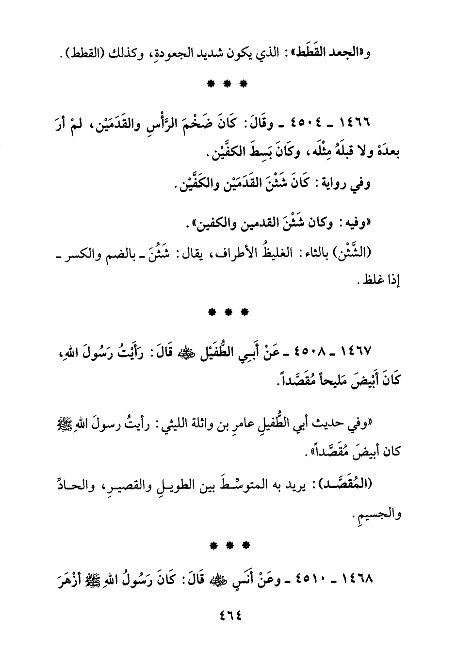 1466 - 4504 - وقال: كان ضخم الرأس والقدمين, لم أر بعده ولا قبله مثله, وكان بسط الكفين"