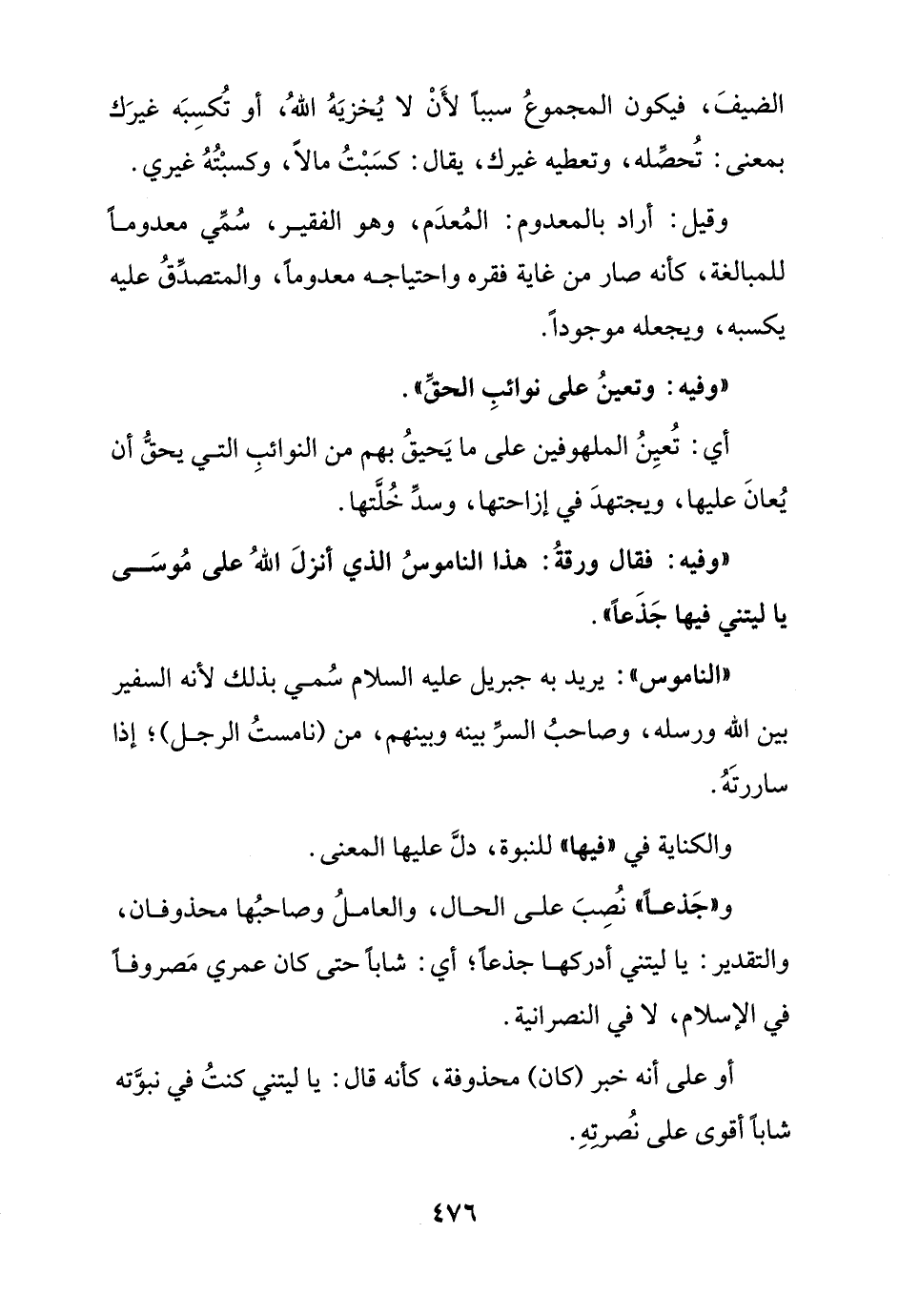 "وفيه: فقال ورقة: هذا الناموس الذي أنزل الله على موسى يا ليتني فيها جذعا"