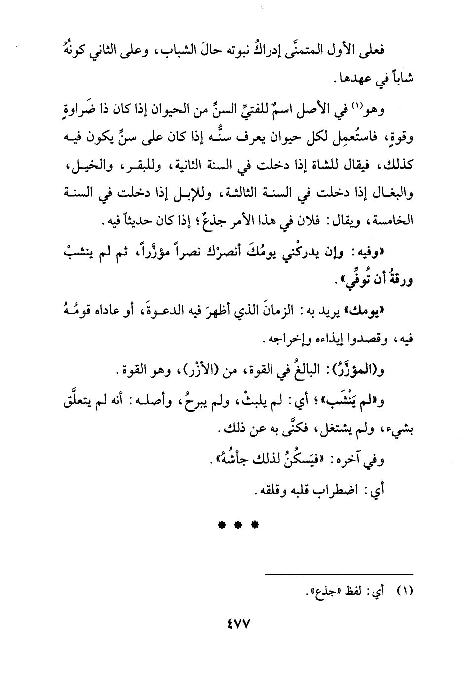 "وفيه: وإن يدركني يومك أنصرك نصرا مؤزرا, ثم لم ينشب ورقة أن توفي"