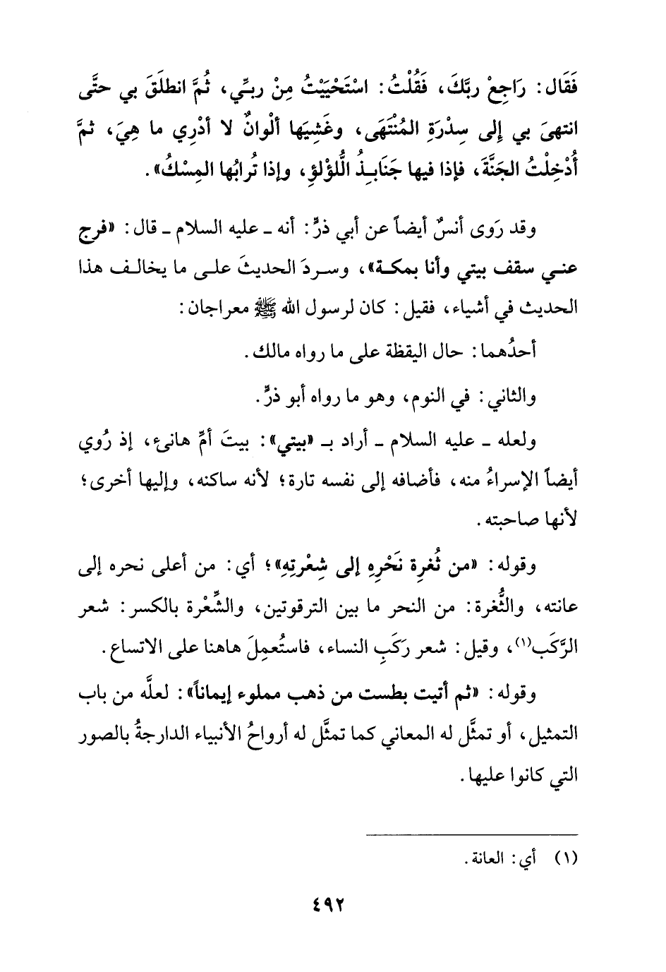 والثاني: في النوم, وهو ما رواه أبو ذر. ولعله -عليه السلام- أراد بـ"بيتي": بيت أم هانيء, إذ روي أيضا الإسراء منه, فأضافه إلى نفسه تارة, لأنه ساكنه, وإليها أخرى, لأنها صاحبته.