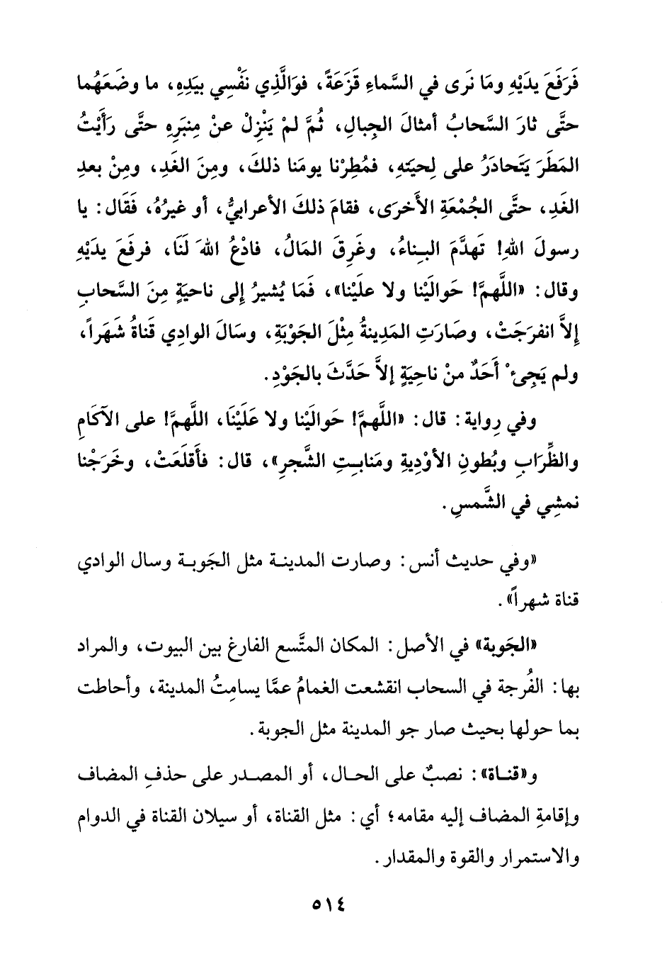 "وفي حديث أنس: وصارت المدينة مثل الجوبة وسال الوادي قناة شهرا"
