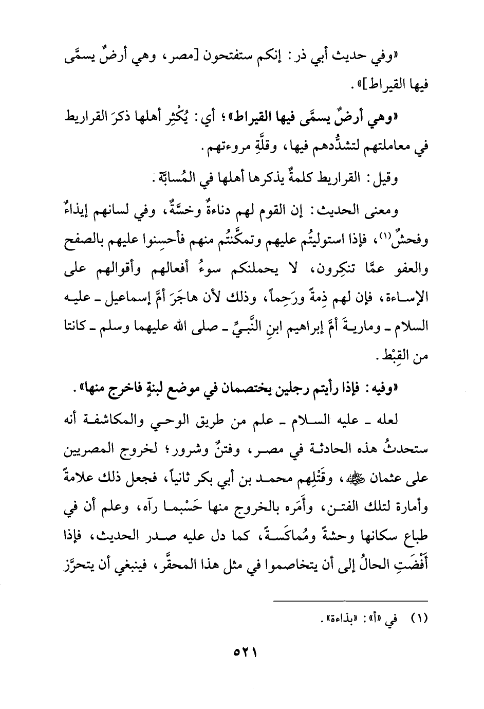 "وفي حديث أبي ذر: إنكم ستفتحون [مصر, وهي أرض يسمى فيها القيراط] ".