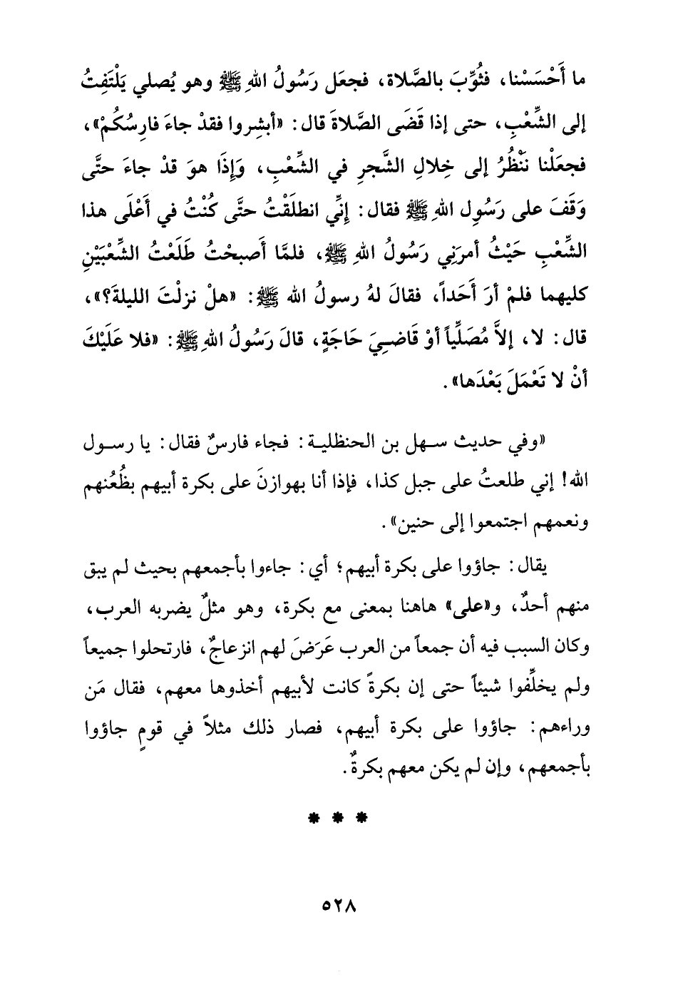 "وفي حديث سهل بن الحنظلية: فجاء فارس فقال: يا رسول الله! إني طلعت على جبل كذا, فإذا أنا بهوازن على بكرة أبيهم بظعنهم ونعمهم اجتمعوا إلى حنين"