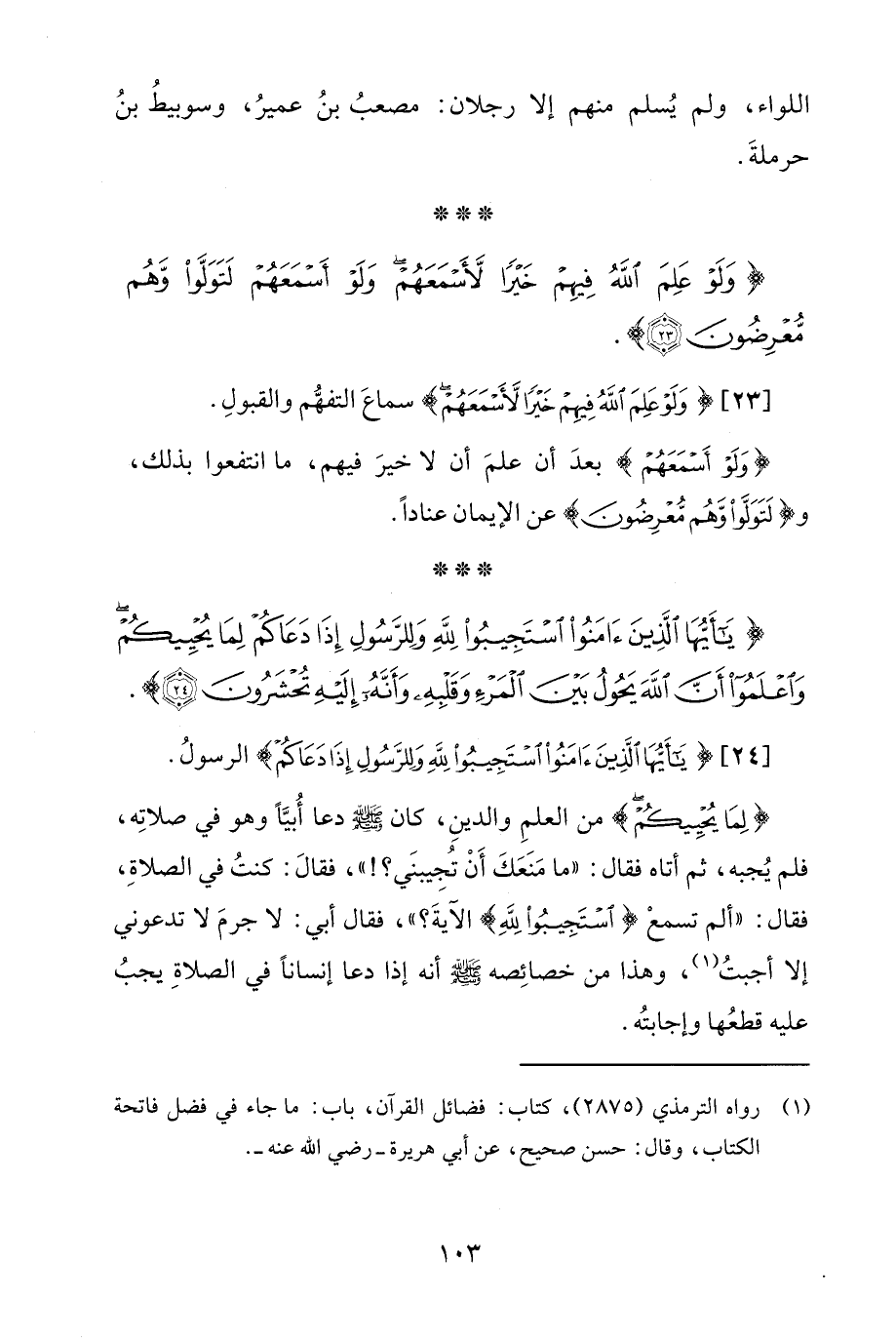 [23] {وَلَوْ عَلِمَ اللَّهُ فِيهِمْ خَيْرًا لأَسْمَعَهُمْ} سماعَ التفهُّم والقبولِ.