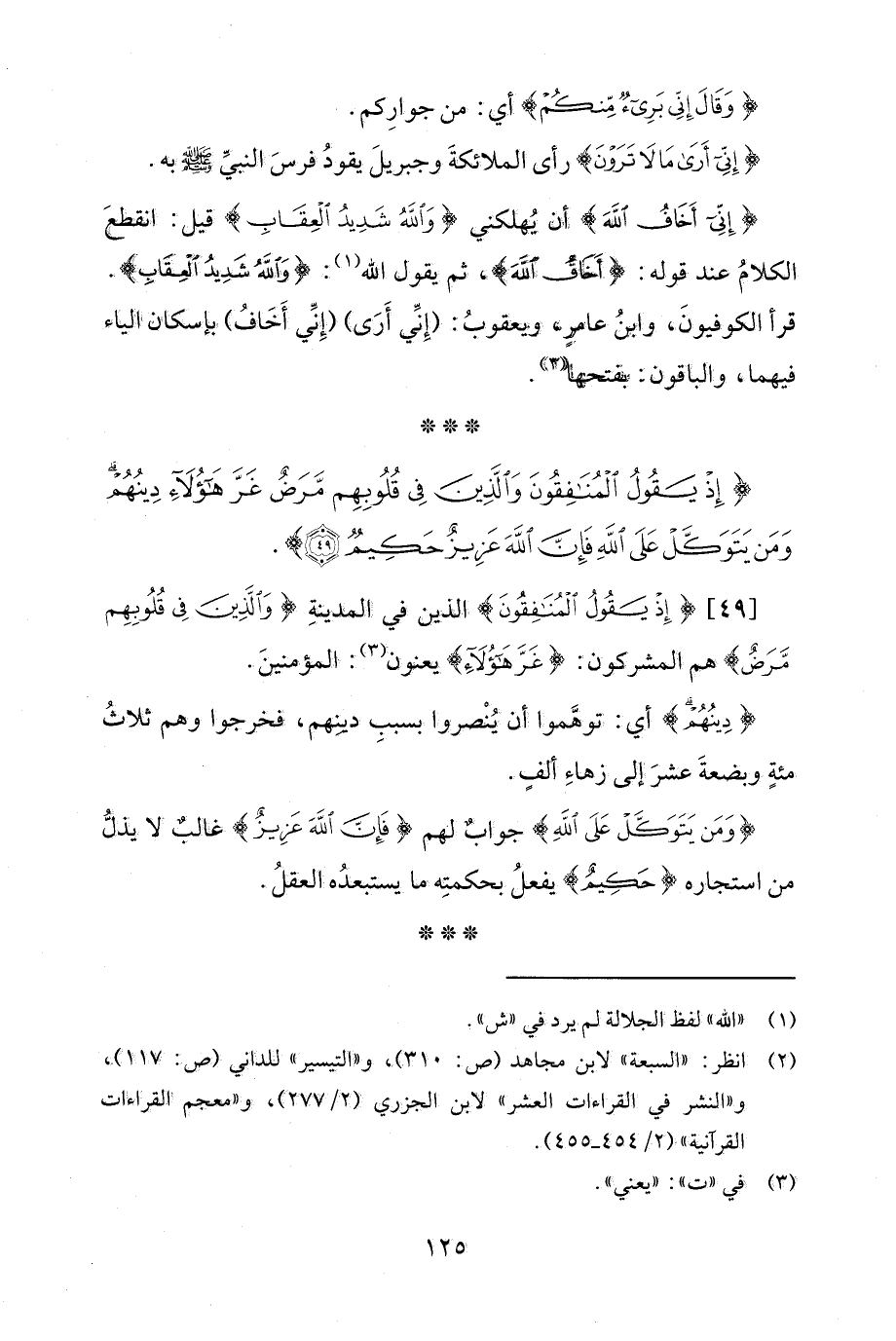 (¬2) انظر: "السبعة" لابن مجاهد (ص: 310)، و"التيسير" للداني (ص: 117)، و"النشر في القراءات العشر" لابن الجزري (2/ 277)، و"معجم القراءات القرآنيّة" (2/ 454 - 455).