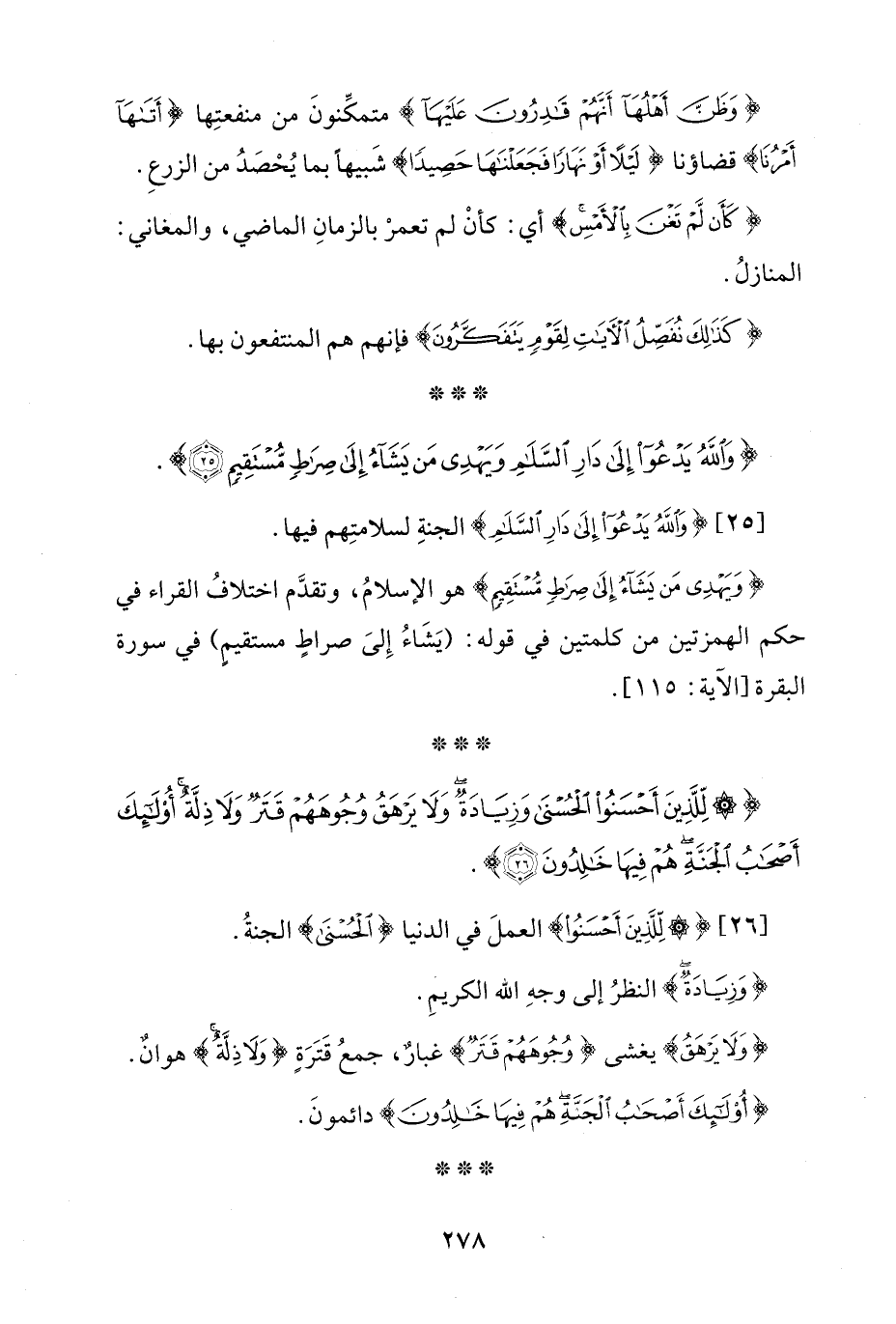 {لِلَّذِينَ أَحْسَنُوا الْحُسْنَى وَزِيَادَةٌ وَلَا يَرْهَقُ وُجُوهَهُمْ قَتَرٌ وَلَا ذِلَّةٌ أُولَئِكَ أَصْحَابُ الْجَنَّةِ هُمْ فِيهَا خَالِدُونَ (26)}.
