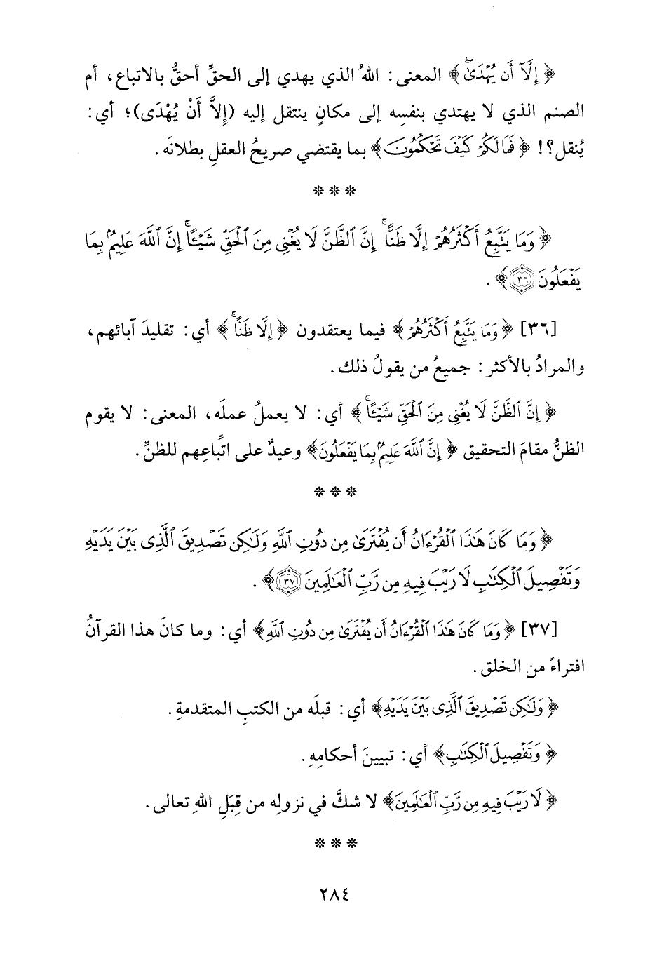 {وَمَا كَانَ هَذَا الْقُرْآنُ أَنْ يُفْتَرَى مِنْ دُونِ اللَّهِ وَلَكِنْ تَصْدِيقَ الَّذِي بَيْنَ يَدَيْهِ وَتَفْصِيلَ الْكِتَابِ لَا رَيْبَ فِيهِ مِنْ رَبِّ الْعَالَمِينَ (37)}.