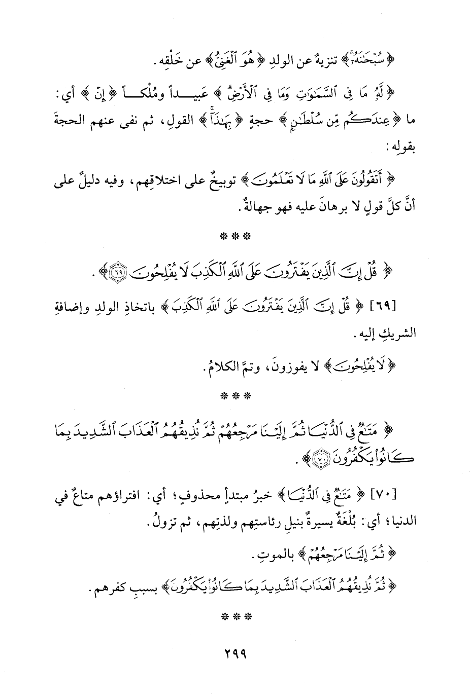 [69] {قُلْ إِنَّ الَّذِينَ يَفْتَرُونَ عَلَى اللَّهِ الْكَذِبَ} باتخاذِ الولدِ وإضافةِ الشريكِ إليه.