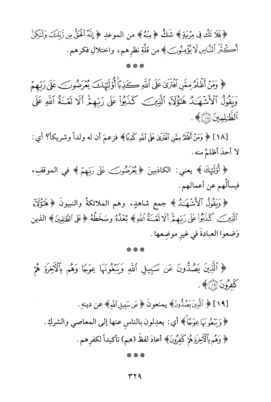 {وَمَنْ أَظْلَمُ مِمَّنِ افْتَرَى عَلَى اللَّهِ كَذِبًا أُولَئِكَ يُعْرَضُونَ عَلَى رَبِّهِمْ وَيَقُولُ الْأَشْهَادُ هَؤُلَاءِ الَّذِينَ كَذَبُوا عَلَى رَبِّهِمْ أَلَا لَعْنَةُ اللَّهِ عَلَى الظَّالِمِينَ (18)}.