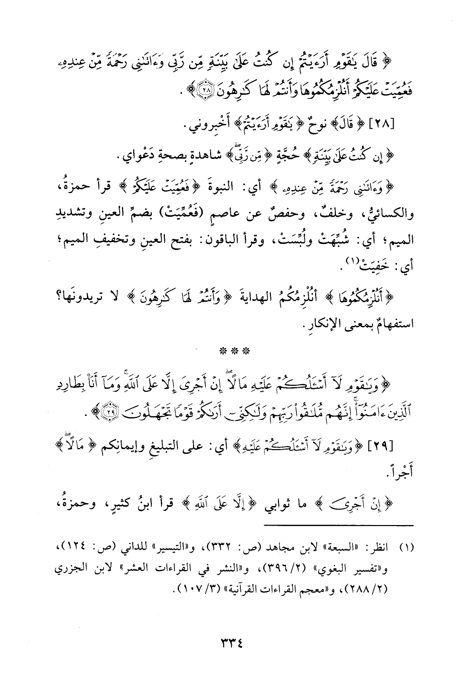 {قَالَ يَاقَوْمِ أَرَأَيْتُمْ إِنْ كُنْتُ عَلَى بَيِّنَةٍ مِنْ رَبِّي وَآتَانِي رَحْمَةً مِنْ عِنْدِهِ فَعُمِّيَتْ عَلَيْكُمْ أَنُلْزِمُكُمُوهَا وَأَنْتُمْ لَهَا كَارِهُونَ (28)}.