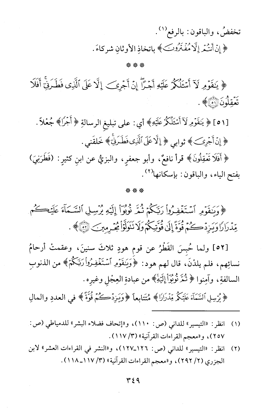 {يَاقَوْمِ لَا أَسْأَلُكُمْ عَلَيْهِ أَجْرًا إِنْ أَجْرِيَ إِلَّا عَلَى الَّذِي فَطَرَنِي أَفَلَا تَعْقِلُونَ (51)}.
