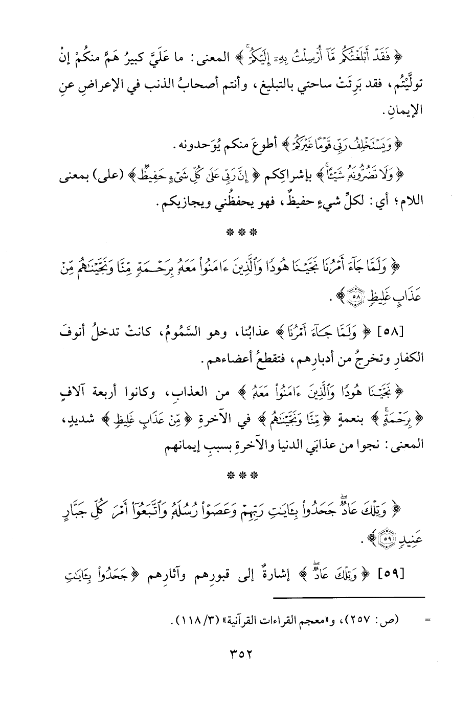 {وَلَمَّا جَاءَ أَمْرُنَا نَجَّيْنَا هُودًا وَالَّذِينَ آمَنُوا مَعَهُ بِرَحْمَةٍ مِنَّا وَنَجَّيْنَاهُمْ مِنْ عَذَابٍ غَلِيظٍ (58)}.