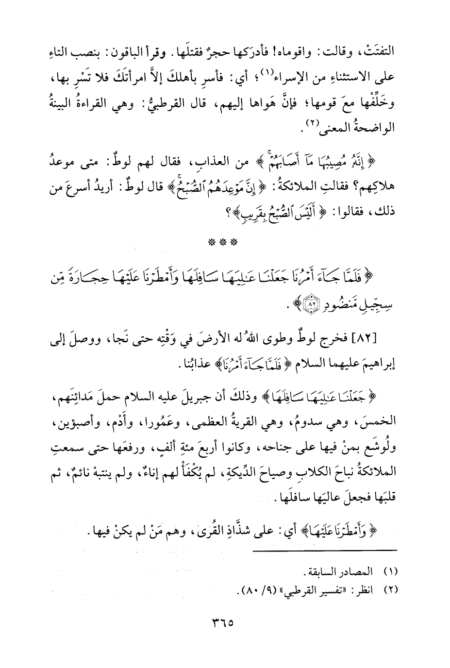 {فَلَمَّا جَاءَ أَمْرُنَا جَعَلْنَا عَالِيَهَا سَافِلَهَا وَأَمْطَرْنَا عَلَيْهَا حِجَارَةً مِنْ سِجِّيلٍ مَنْضُودٍ (82)}.