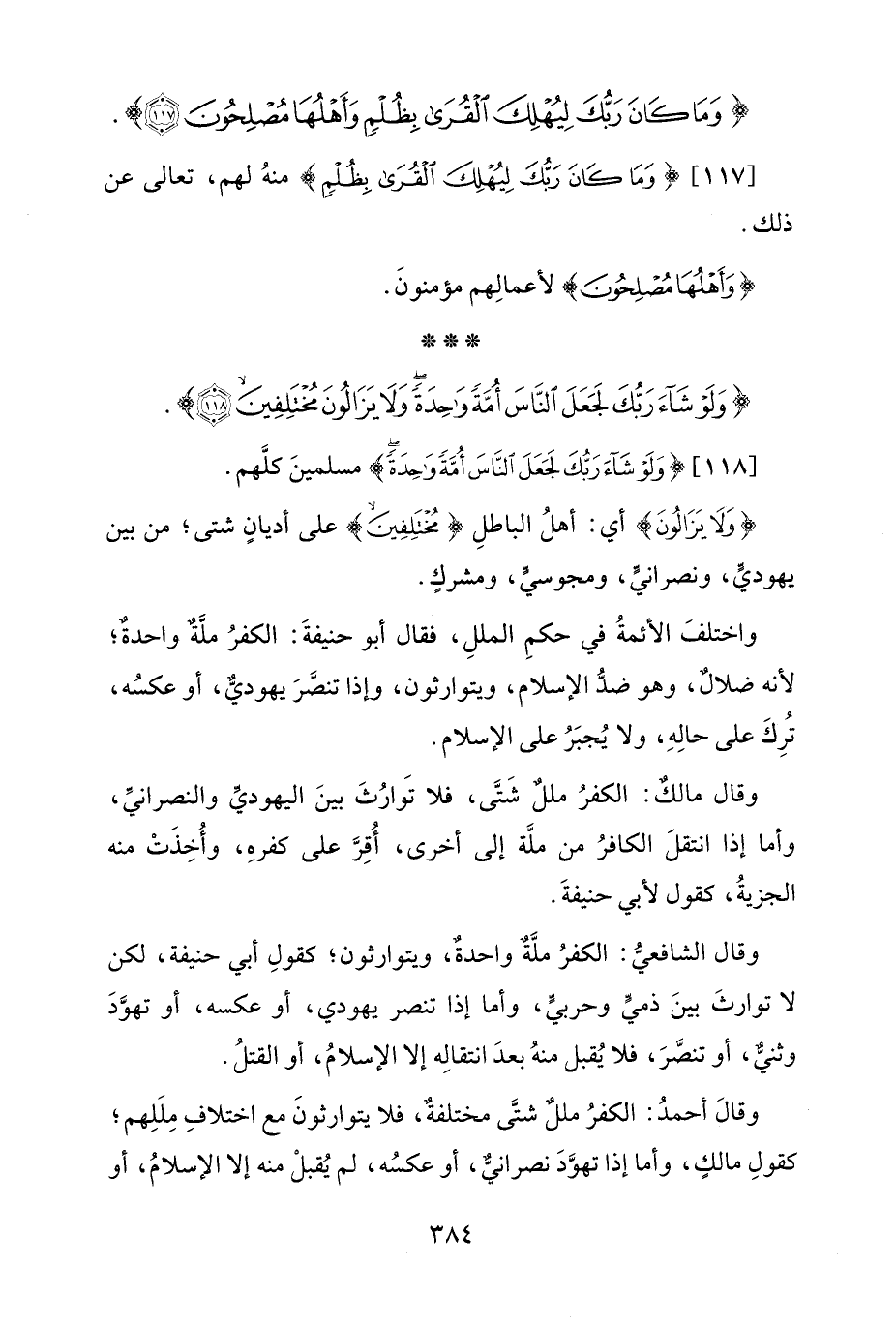 [118] {وَلَوْ شَاءَ رَبُّكَ لَجَعَلَ النَّاسَ أُمَّةً وَاحِدَةً} مسلمينَ كلَّهم.
