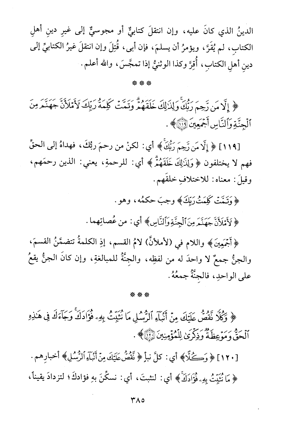 {إِلَّا مَنْ رَحِمَ رَبُّكَ وَلِذَلِكَ خَلَقَهُمْ وَتَمَّتْ كَلِمَةُ رَبِّكَ لأَمْلأَنَّ جَهَنَّمَ مِنَ الْجِنَّةِ وَالنَّاسِ أَجْمَعِينَ (119)}.