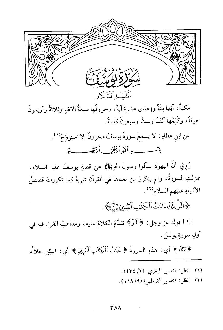 {الر تِلْكَ آيَاتُ الْكِتَابِ الْمُبِينِ (1)} [يوسف: 1].