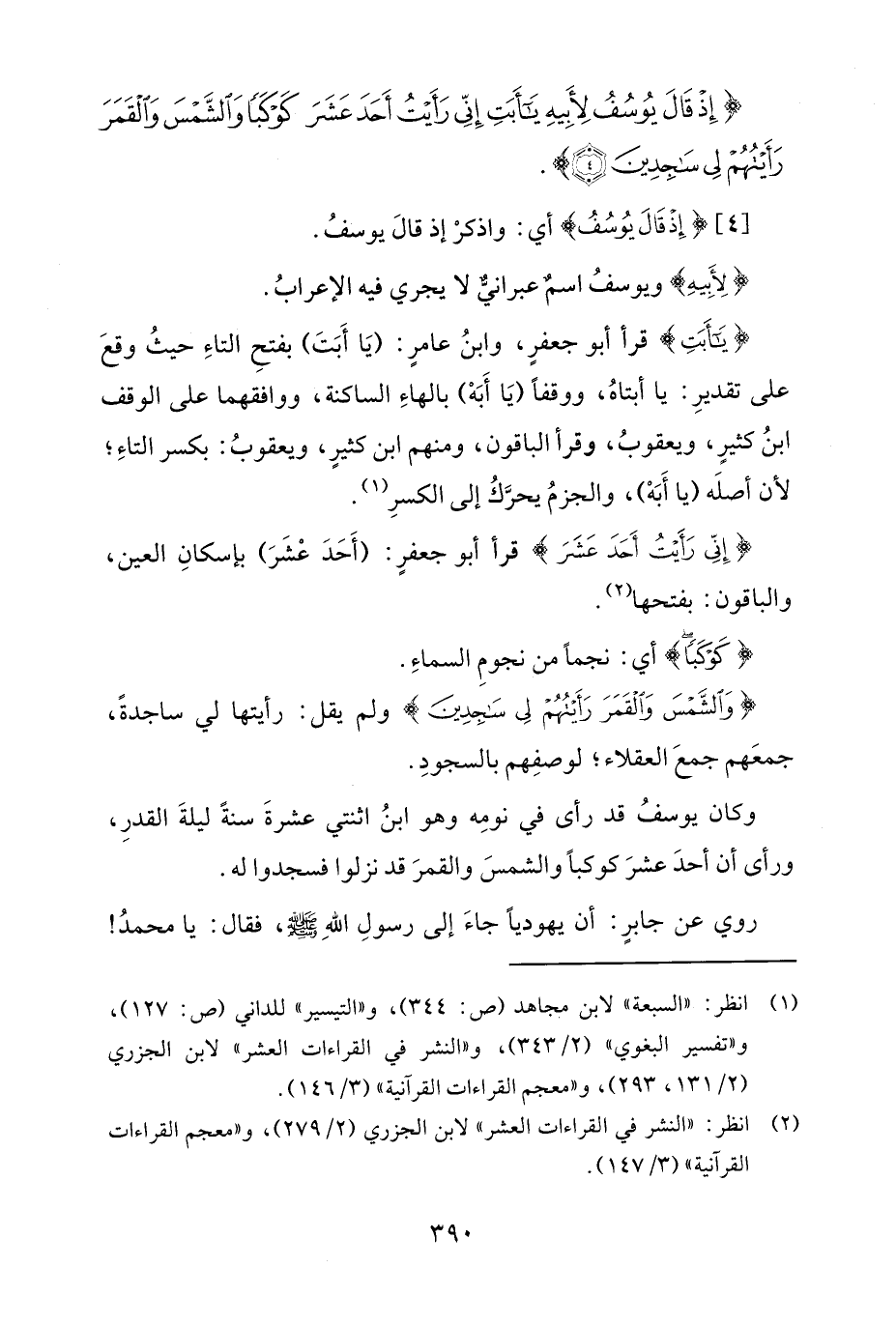 {إِنِّي رَأَيْتُ أَحَدَ عَشَرَ} قرأ أبو جعفرٍ: (أَحَدَ عْشَرَ) بإسكانِ العين، والباقون: بفتحها (¬2).