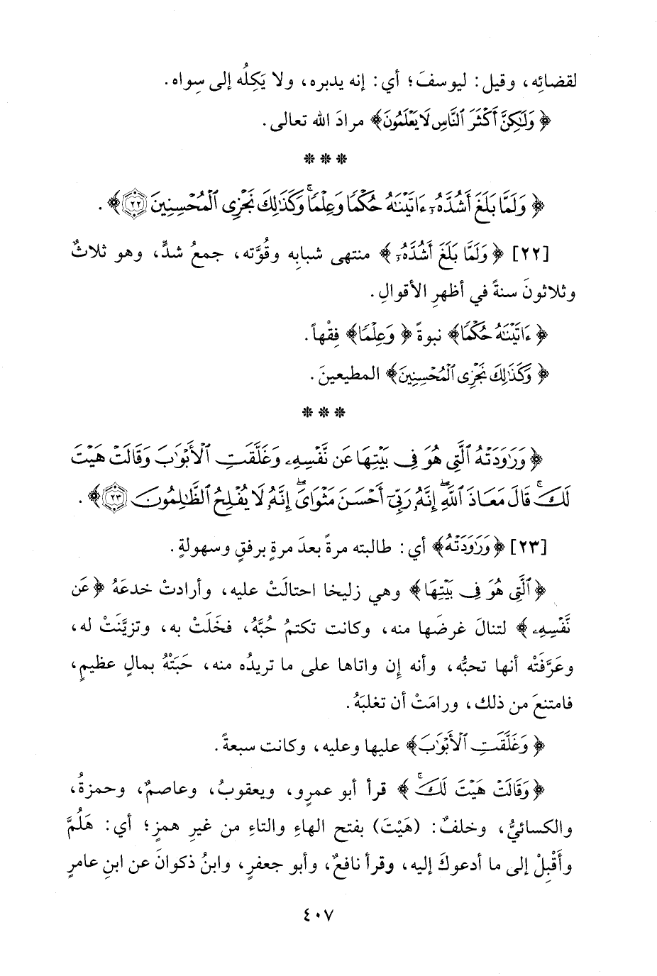 [23] {وَرَاوَدَتهُ} أي: طالبته مرةً بعدَ مرةٍ برفقٍ وسهولةٍ.