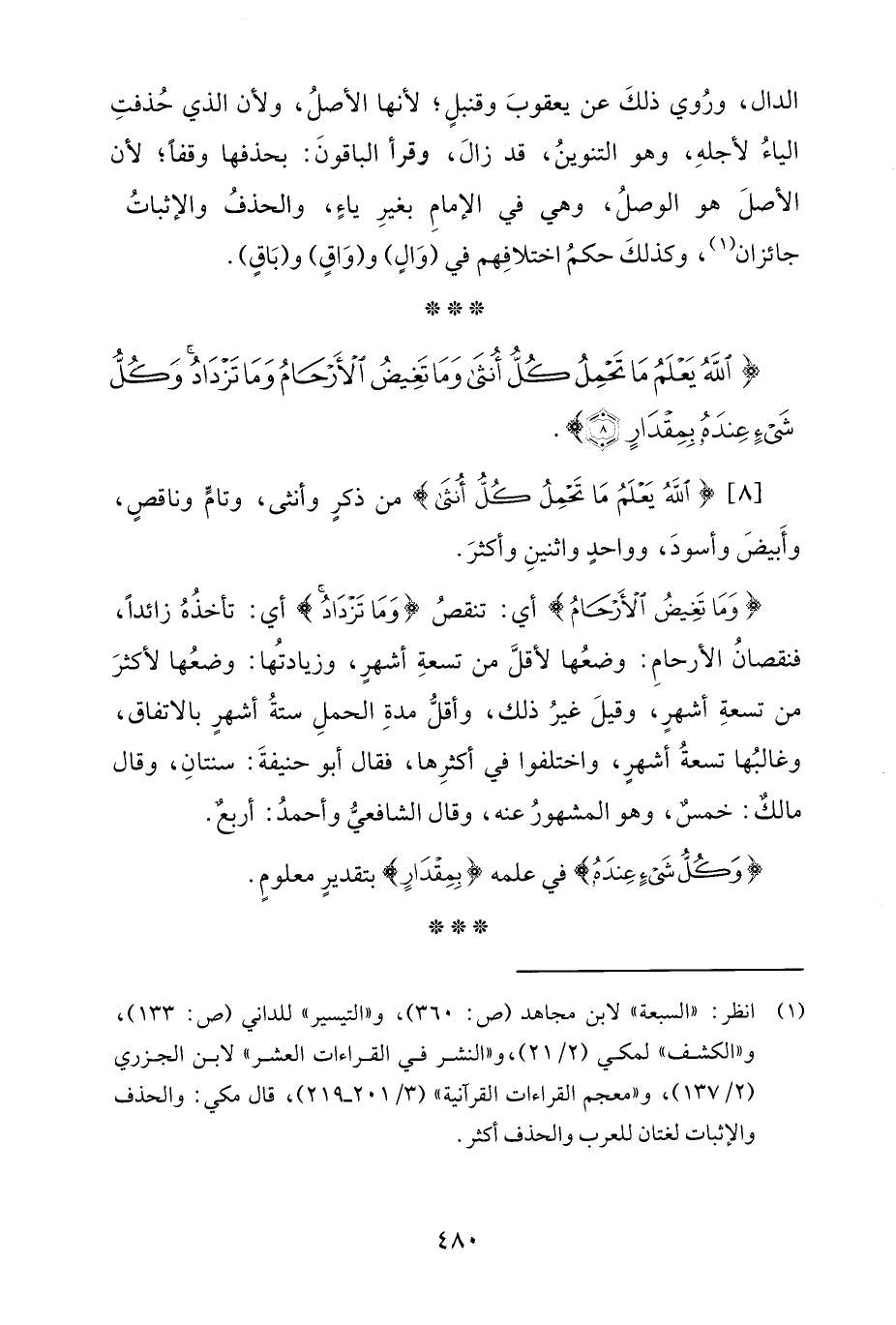 [8] {اللَّهُ يَعْلَمُ مَا تَحْمِلُ كُلُّ أُنْثَى} من ذكرٍ وأنثى، وتامٍّ وناقصٍ، وأَبيضَ وأسودَ، وواحدٍ واثنينِ وأكثرَ.