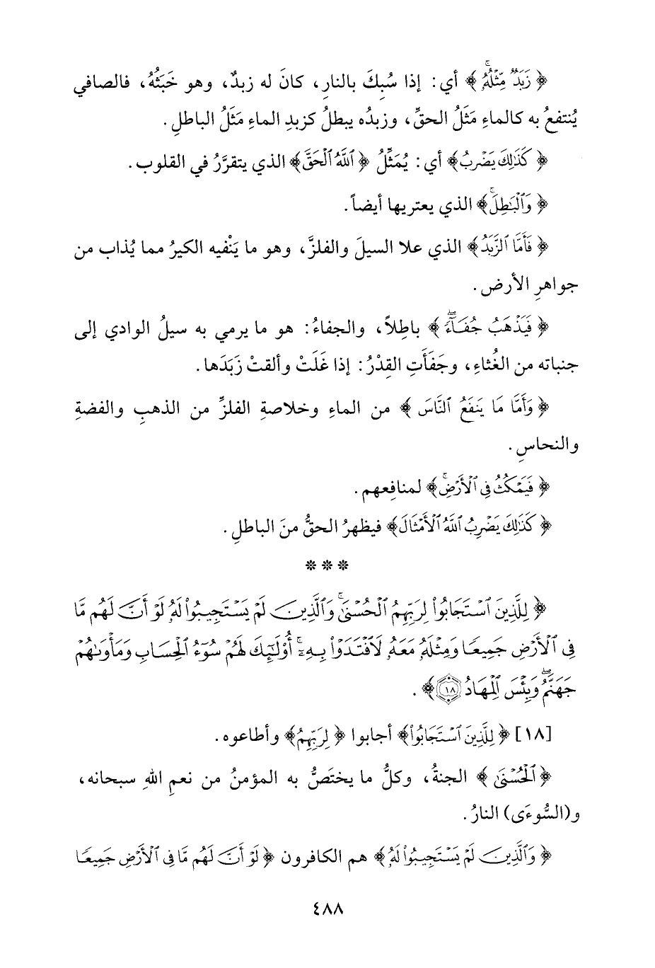 [18] {لِلَّذِينَ اسْتَجَابُوا} أجابوا {لِرَبِّهِمُ} وأطاعوه.