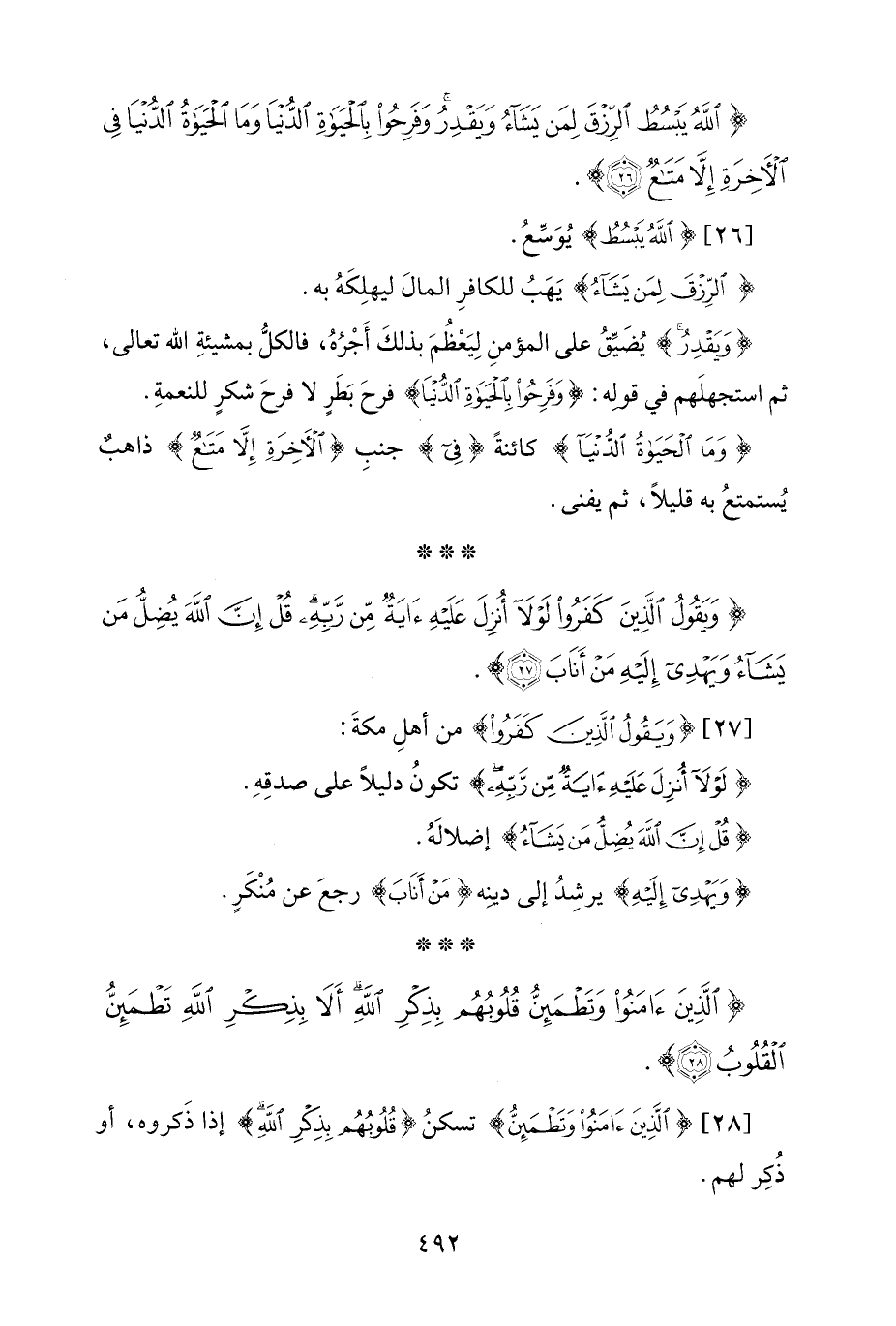 {اللَّهُ يَبْسُطُ الرِّزْقَ لِمَنْ يَشَاءُ وَيَقْدِرُ وَفَرِحُوا بِالْحَيَاةِ الدُّنْيَا وَمَا الْحَيَاةُ الدُّنْيَا فِي الْآخِرَةِ إِلَّا مَتَاعٌ (26)}.