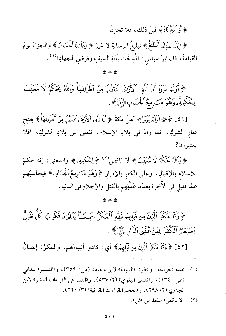{أَوَلَمْ يَرَوْا أَنَّا نَأْتِي الْأَرْضَ نَنْقُصُهَا مِنْ أَطْرَافِهَا وَاللَّهُ يَحْكُمُ لَا مُعَقِّبَ لِحُكْمِهِ وَهُوَ سَرِيعُ الْحِسَابِ (41)}.