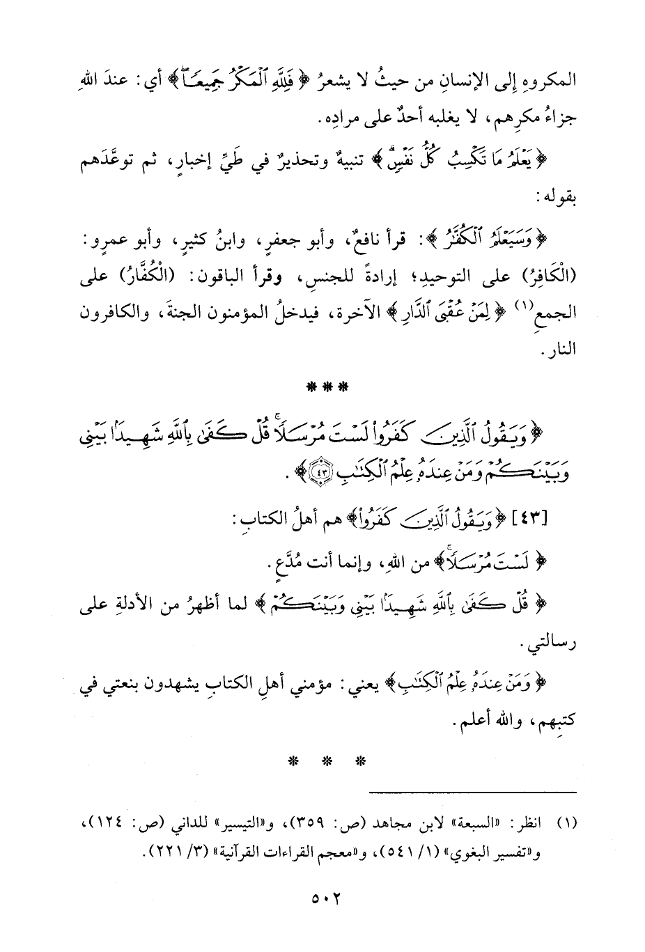 [43] {وَيَقُولُ الَّذِينَ كَفَرُوا} هم أهلُ الكتابِ: