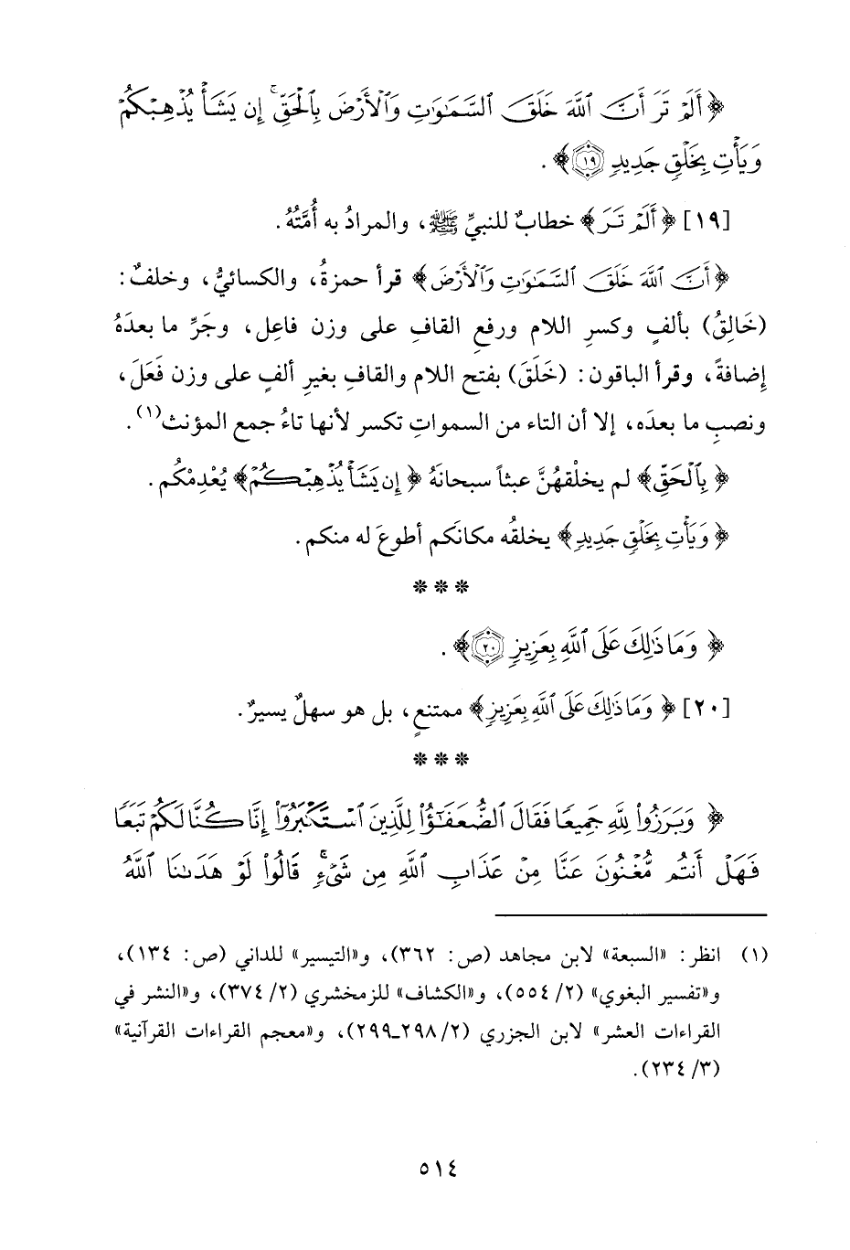 {أَلَمْ تَرَ أَنَّ اللَّهَ خَلَقَ السَّمَاوَاتِ وَالْأَرْضَ بِالْحَقِّ إِنْ يَشَأْ يُذْهِبْكُمْ وَيَأْتِ بِخَلْقٍ جَدِيدٍ (19)}.