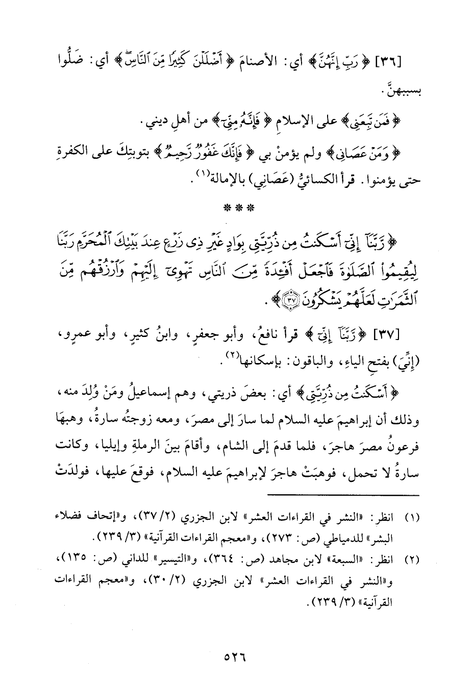 [37] {رَبَّنَا إِنِّي} قرأ نافعُ، وأبو جعفرٍ، وابنُ كثيرٍ، وأبو عمرٍو، (إِنِّيَ) بفتحِ الياءِ، والباقون: بإسكانها (¬2).