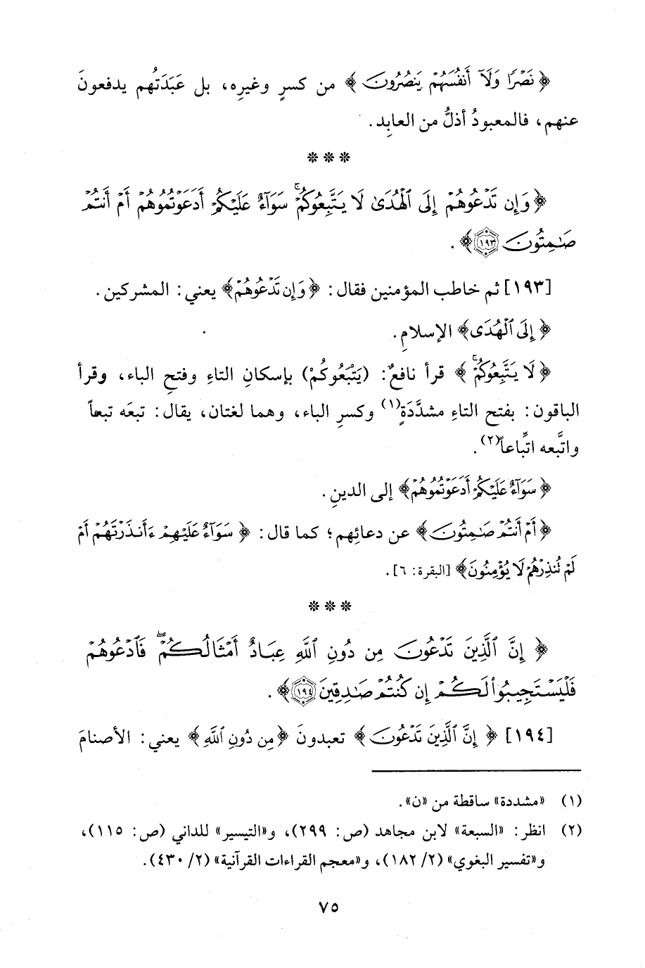 {إِنَّ الَّذِينَ تَدْعُونَ مِنْ دُونِ اللَّهِ عِبَادٌ أَمْثَالُكُمْ فَادْعُوهُمْ فَلْيَسْتَجِيبُوا لَكُمْ إِنْ كُنْتُمْ صَادِقِينَ (194)}.