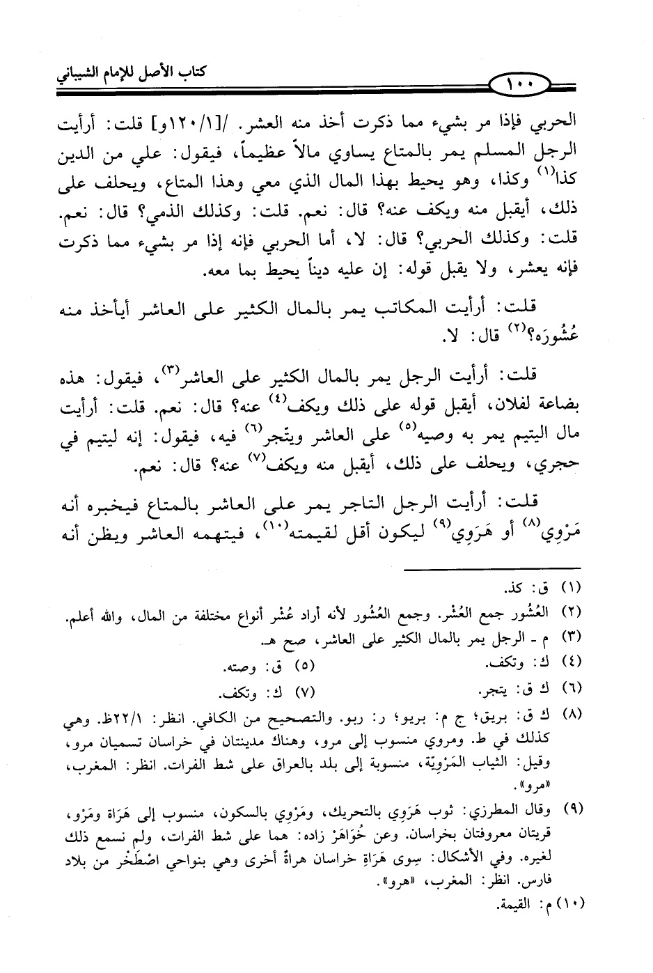 (¬8) ك ق: بريق؛ ج م: بريو، ر: ربو. والتصحيح من الكافي. انظر: 1/ 22 ظ. وهي كذلك في ط. ومروي منسوب إلى مرو، وهناك مدينتان في خراسان تسميان مرو، وقيل: الثياب المَرْوِيّة، منسوبة إلى بلد بالعراق على شط الفرات. انظر: المغرب، "مرو".