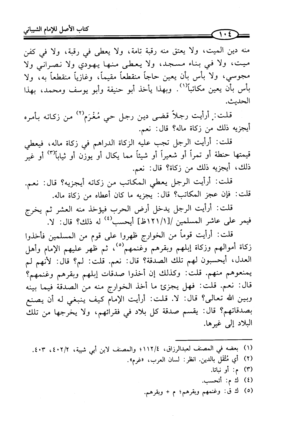 منه دين الميت، ولا يعتق منه رقبة تامة، ولا يعطى في رقبة، ولا في كفن ميت، ولا في بناء مسجد، ولا يعطى منها يهودي ولا نصراني ولا مجوسي، ولا بأس بأن يعين حاجاً منقطعاً مقيماً، وغازياً منقطعاً به، ولا بأس بأن يعين مكاتباً (¬1). وبهذا يأخذ أبو حنيفة وأبو يوسف ومحمد، بهذا الحديث.