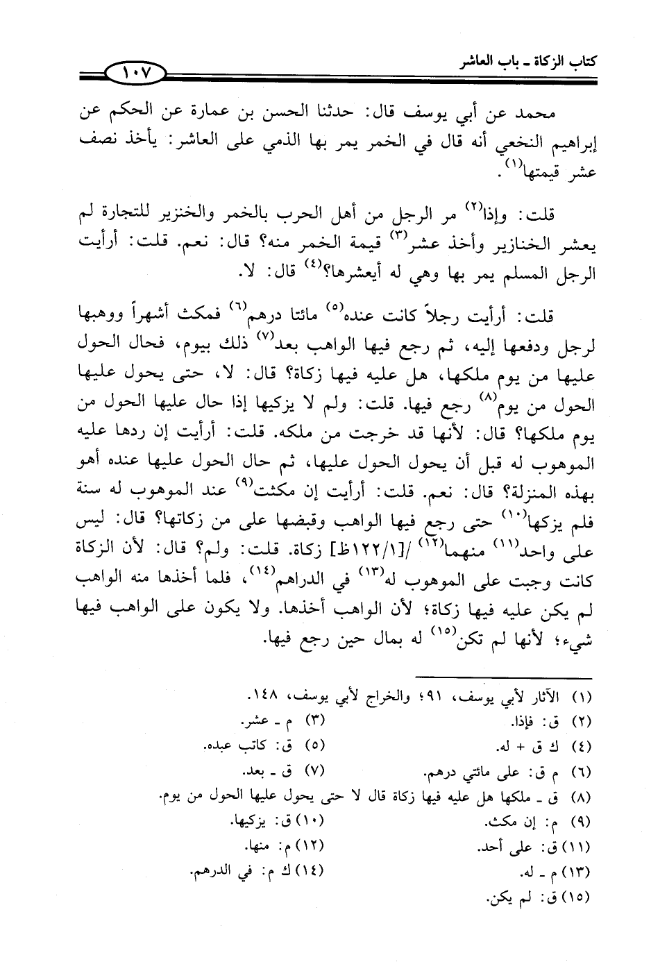 (¬1) الآثار لأبي يوسف، 91؛ والخراج لأبي يوسف، 148.