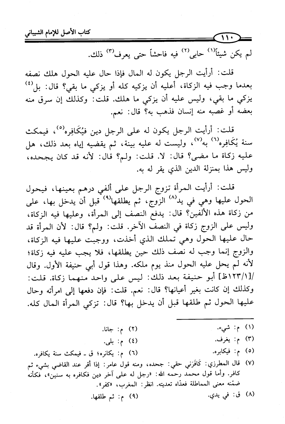 قلت: أرأيت الرجل يكون له المال فإذا حال عليه الحول هلك نصفه بعد ما وجب فيه الزكاة، أعليه أن يزكيه كله أو يزكي ما بقي؟ قال: بل (¬4) يزكي ما بقي، وليس عليه أن يزكي ما هلك. قلت: وكذلك إن سرق منه بعضه أو غصبه منه إنسان فذهب به؟ قال: نعم.