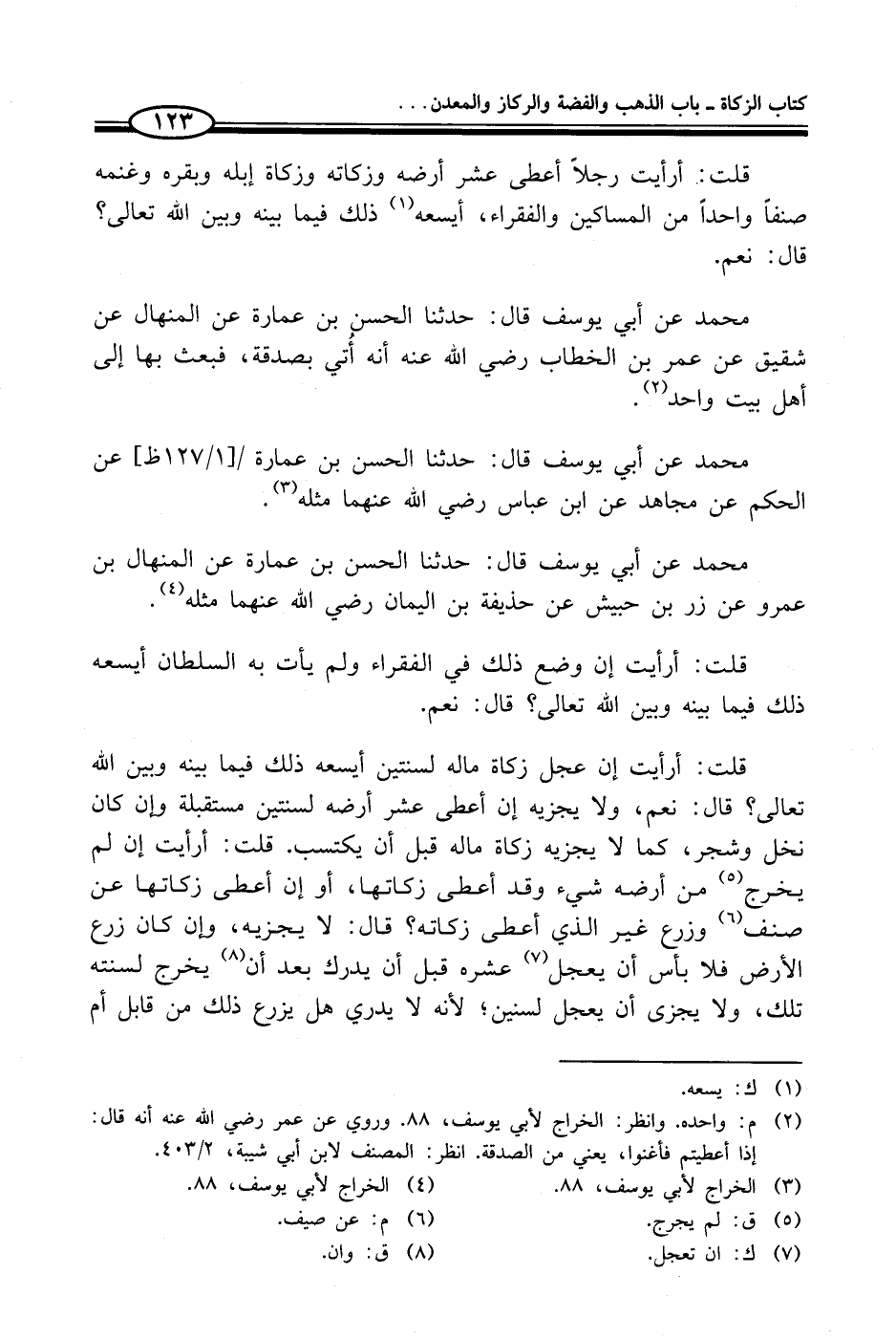(¬4) الخراج لأبي يوسف، 88.