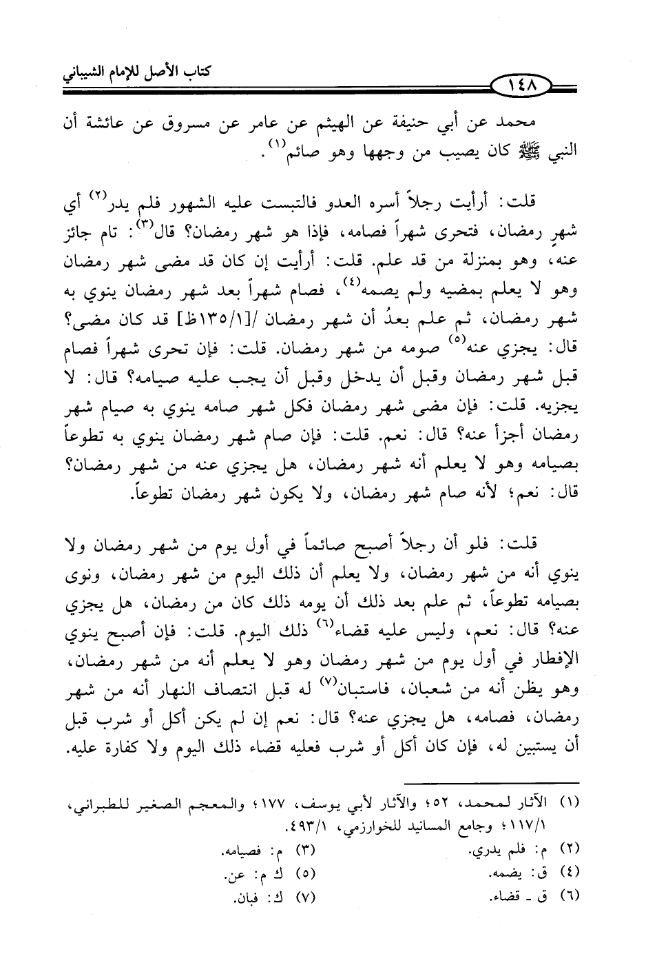 (¬1) الآثار لمحمد، 52؛ والآثار لأبي يوسف، 177؛ والمعجم الصغير للطبراني، 1/ 117؛ وجامع المسانيد للخوارزمي، 1/ 493.