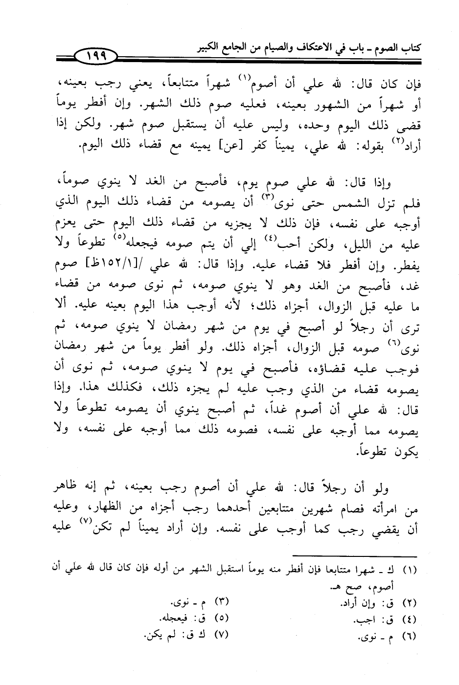 (¬1) ك - شهرا متتابعا فإن أفطر منه يوماً استقبل الشهر من أوله فإن كان قال لله علي أن أصوم، صح هـ