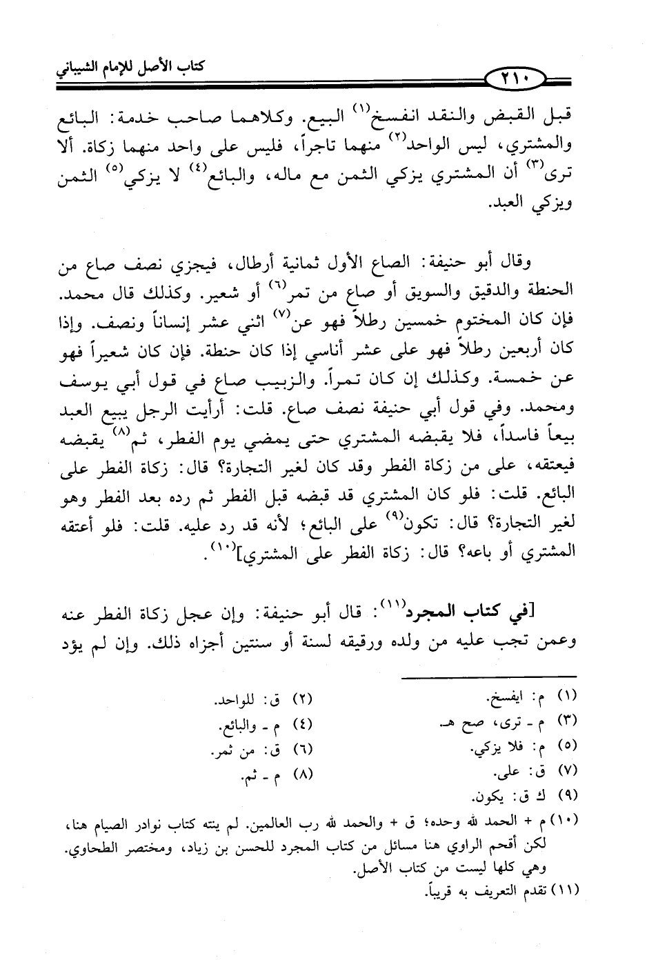 (¬10) م + الحمد لله وحده؛ ق + والحمد لله رب العالمين. لم ينته كتاب نوادر الصيام هنا، لكن أقحم الراوي هنا مسائل من كتاب المجرد للحسن بن زياد، ومختصر الطحاوي. وهي كلها ليست من كتاب الأصل.