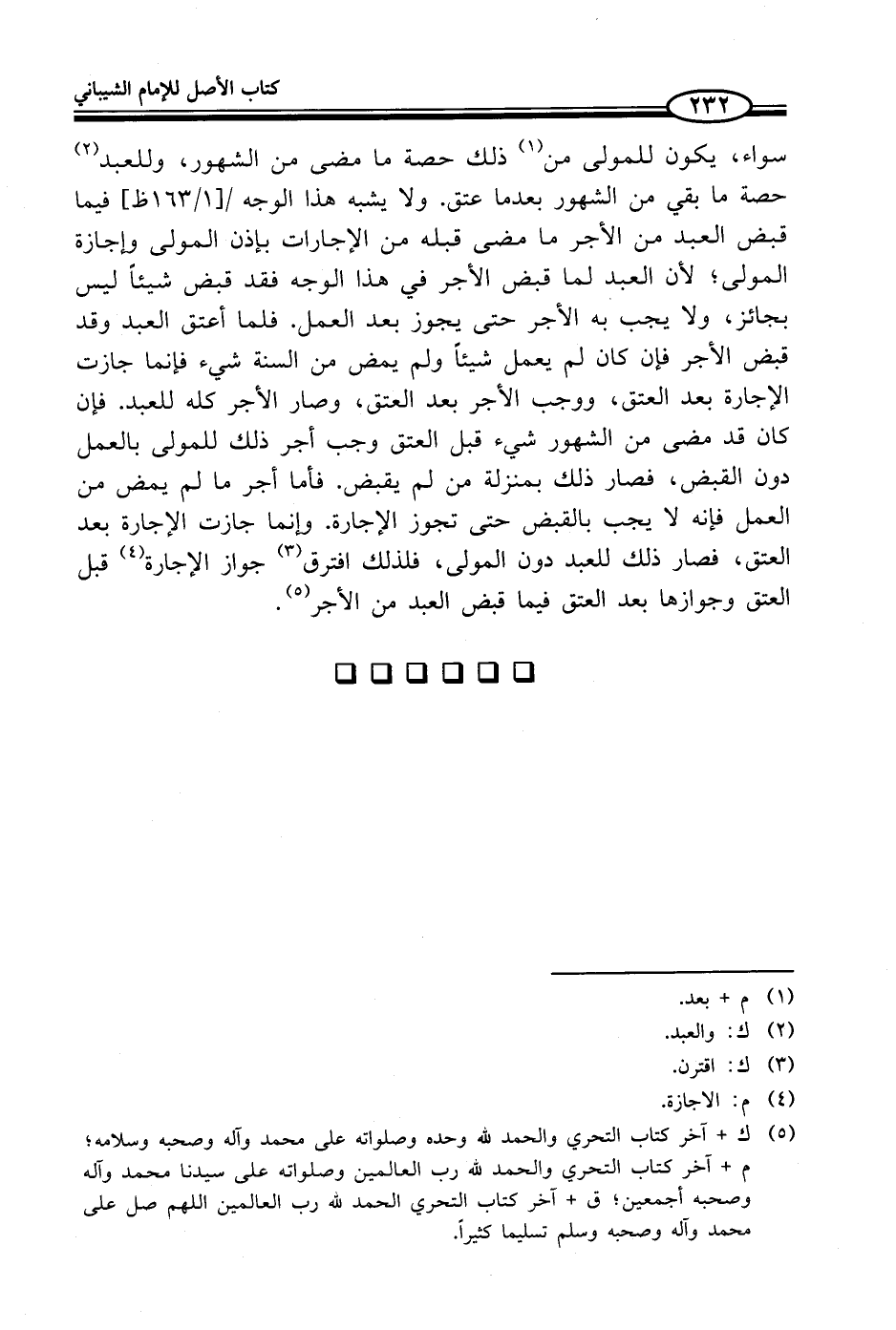 (¬5) ك + آخر كتاب التحري والحمد لله وحده وصلواته على محمد وآله وصحبه وسلامه؛ م + آخر كتاب التحري والحمد لله رب العالمين وصلواته على سيدنا محمد وآله وصحبه أجمعين؛ ق + آخر كتاب التحري الحمد لله رب العالمين اللهم صل على محمد وآله وصحبه وسلم تسليما كثيراً.