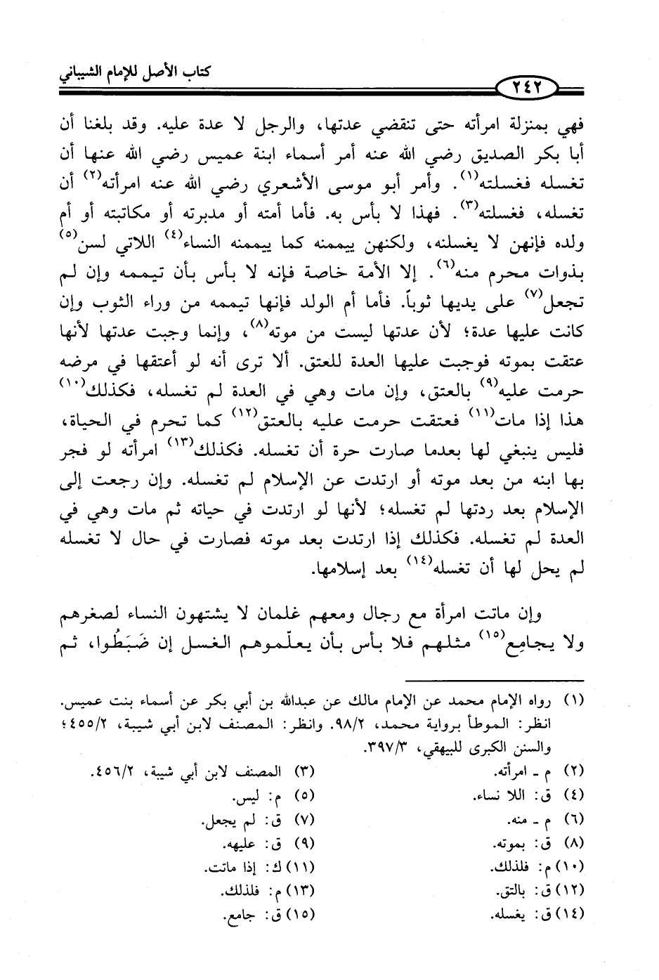 (¬1) رواه الإمام محمد عن الإمام مالك عن عبد الله بن أبي بكر عن أسماء بنت عميس. انظر: الموطأ برواية محمد، 2/ 98. وانظر: المصنف لابن أبي شيبة، 2/ 455؛ والسنن الكبرى للبيهقي، 3/ 397.