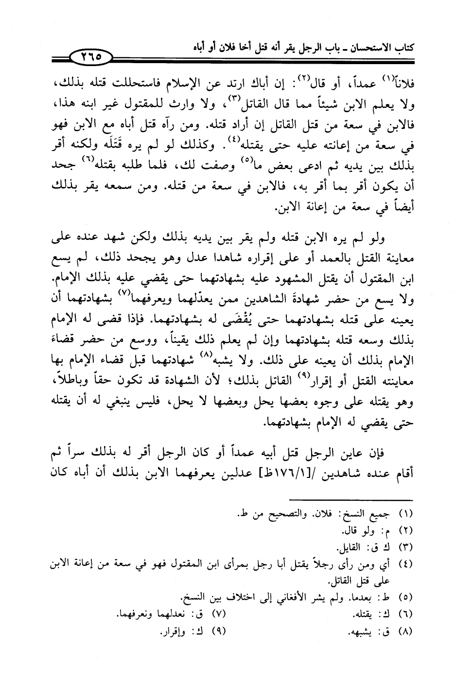فإن عاين الرجل قتل أبيه عمداً أو كان الرجل أقر له بذلك سراً ثم أقام عنده شاهدين عدلين يعرفهما الابن بذلك أن أباه كان