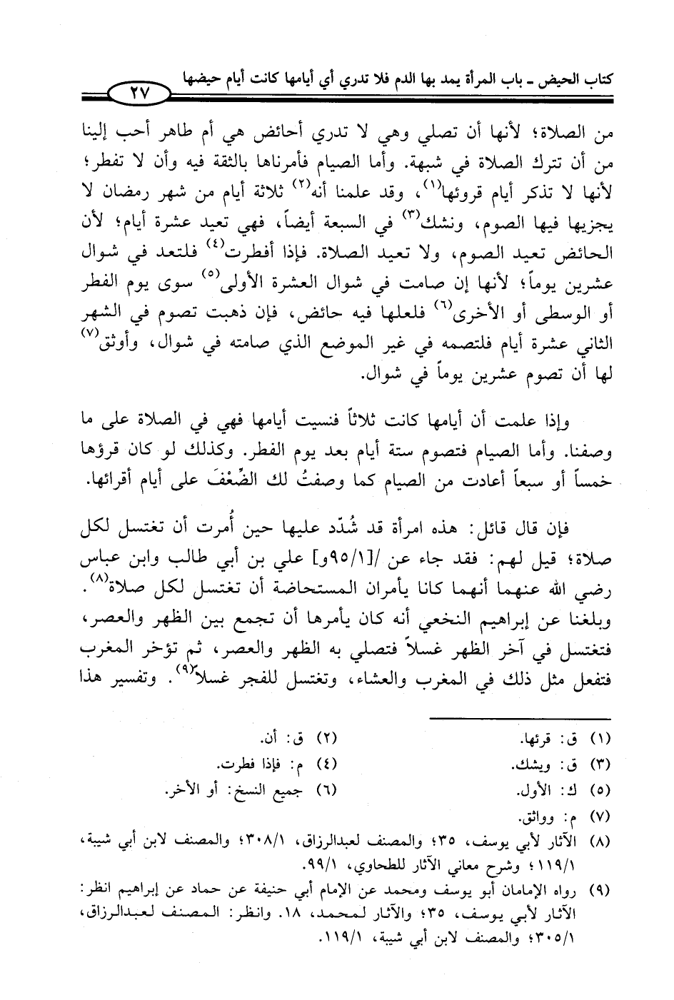 (¬9) رواه الإمامان أبو يوسف ومحمد عن الإِمام أبي حنيفة عن حماد عن إبراهيم انظر: الآثار لأبي يوسف، 35؛ والآثار لمحمد، 18. وانظر: المصنف لعبد الرزاق، 1/ 305؛ والمصنف لابن أبي شيبة، 1/ 119.