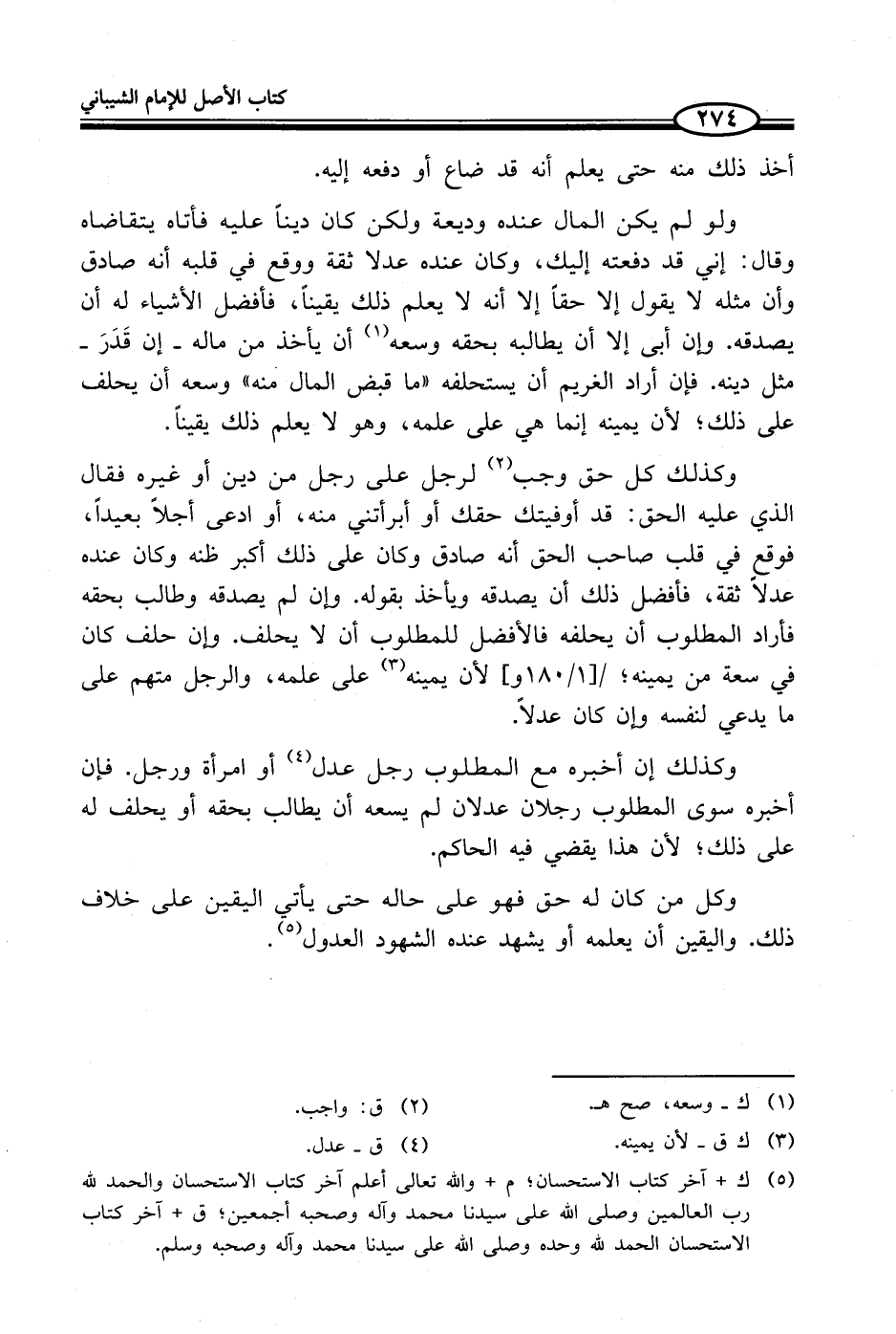 (¬5) ك + آخر كتاب الاستحسان؛ م + والله تعالى أعلم آخر كتاب الاستحسان والحمد لله رب العالمين وصلى الله على سيدنا محمد وآله وصحبه أجمعين؛ ق + آخر كتاب الاستحسان الحمد لله وحده وصلى الله على سيدنا محمد وآله وصحبه وسلم.