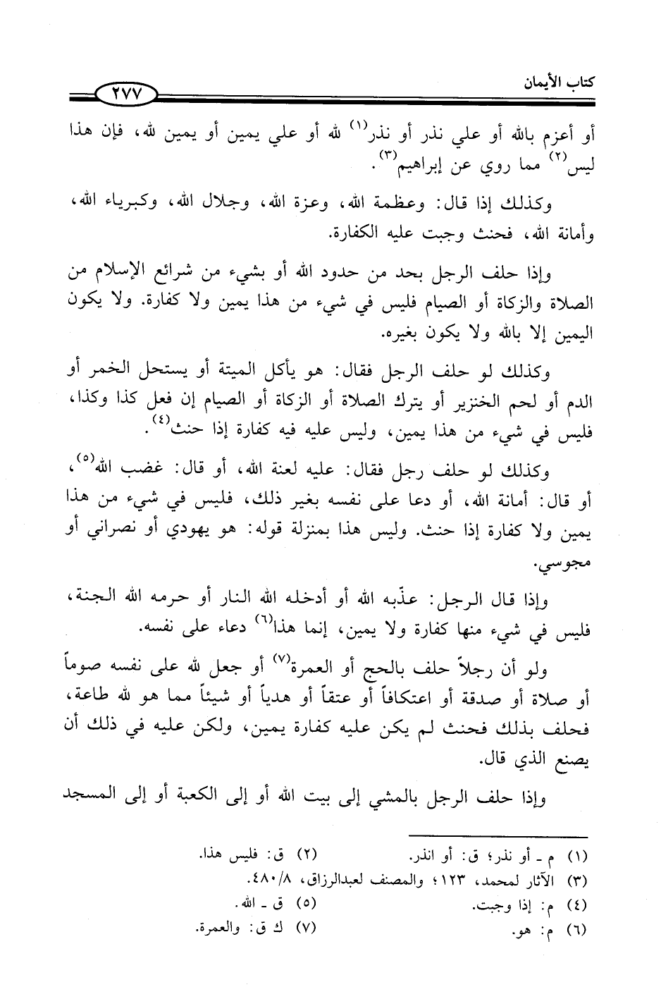 أو أعزم بالله أو علي نذر أو نذر (¬1) لله أو علي يمين أو يمين لله، فإن هذا ليس (¬2) مما روي عن إبراهيم (¬3).