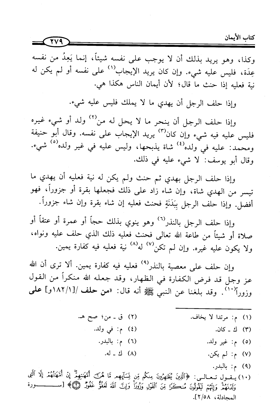 وإن حلف على معصية بالنذر (¬9) فعليه فيه كفارة يمين. ألا ترى أن الله عز وجل قد فرض الكفارة في الظهار، وقد جعله الله منكراً من القول وزوراً (¬10). وقد بلغنا عن النبي - صلى الله عليه وسلم - أنه قال: "من حلف على