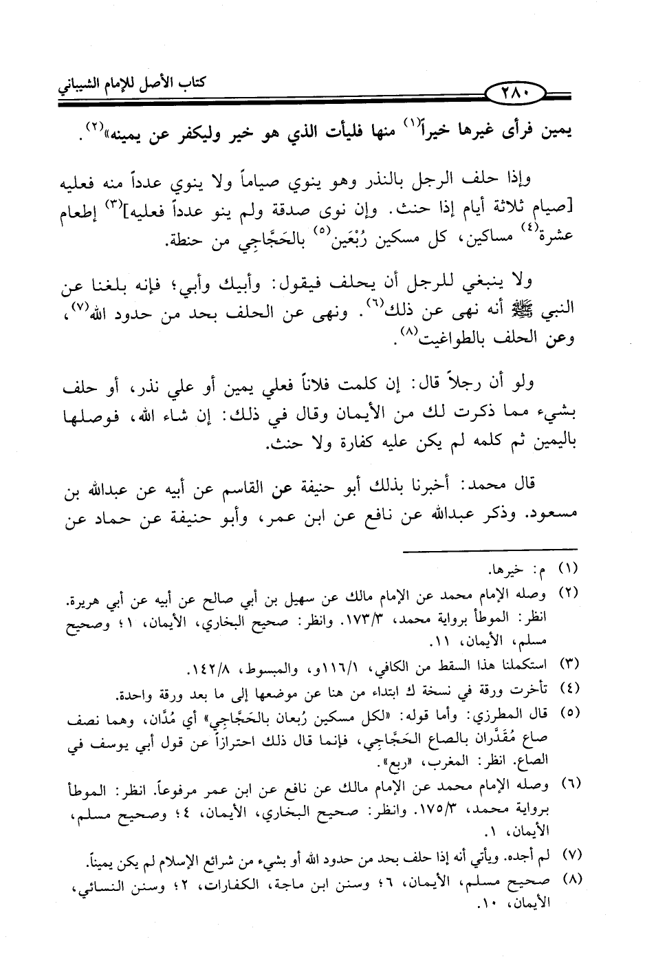 (¬8) صحيح مسلم، الأيمان، 6؛ وسنن ابن ماجة، الكفارات، 2؛ وسنن النسائي، الأيمان، 10.